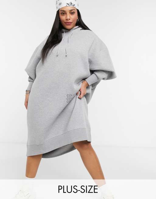 Collusion Plus Midi Slouchy Hoodie Dress In Grey Marl Asos